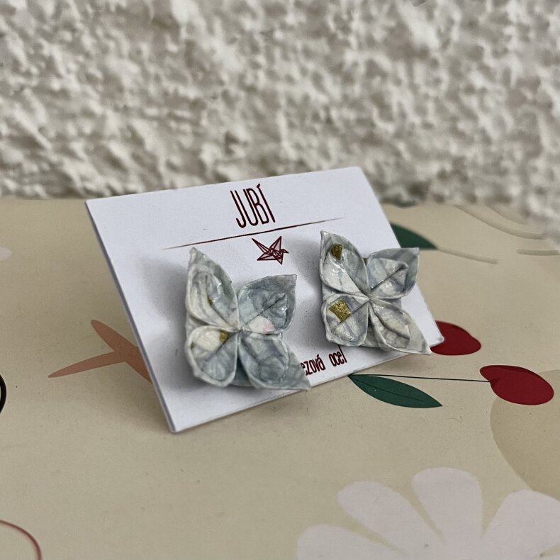 Náušnice jsou ručně složeny z kvalitního dovozového washi papíru, který byl vyroben v samotné kolébce origami v Japonsku.