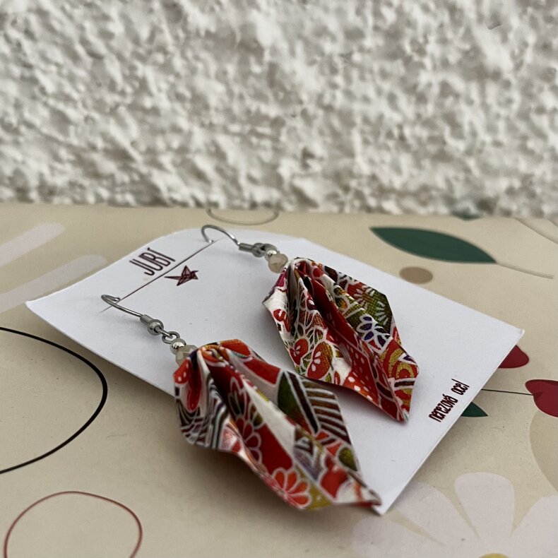 Náušnice jsou ručně složeny z kvalitního dovozového washi papíru, který byl vyroben v samotné kolébce origami v Japonsku.