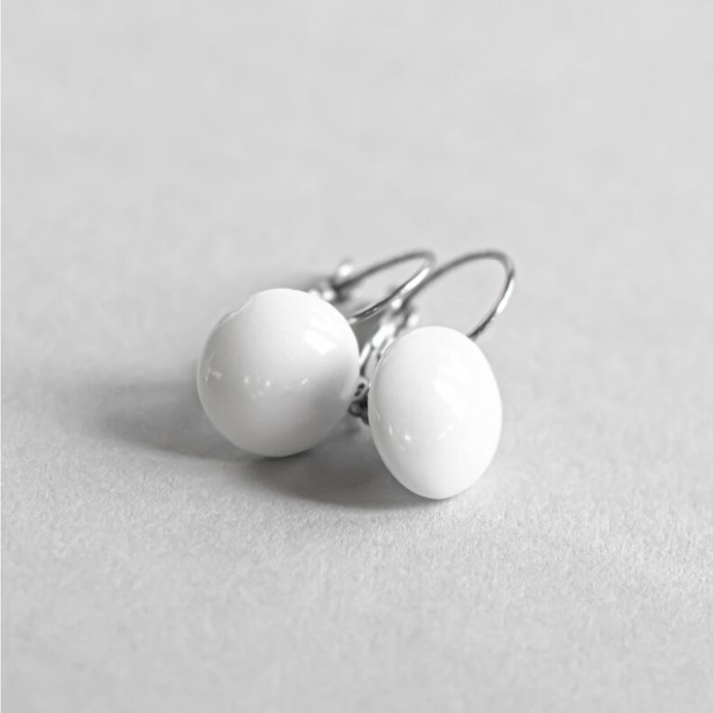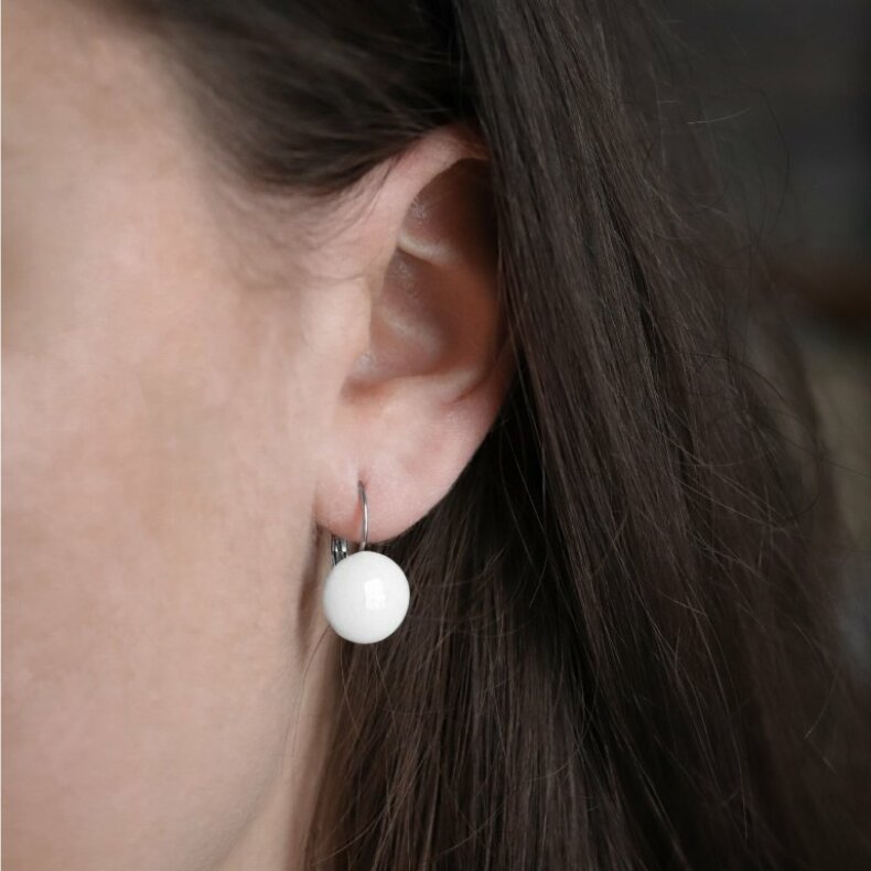 Pecičky - krásné jemné náušnice z porcelánu mírně vypouklého kruhového tvaru, ani moc malé, ani moc velké, prostě tak akorát. Porcelánová pecka je zavěšena na zavíracím závěsu z chirurgické oceli. Průměr pecičky cca 1,3 cm.