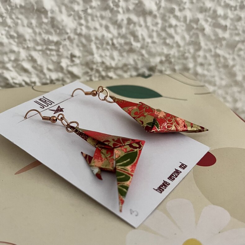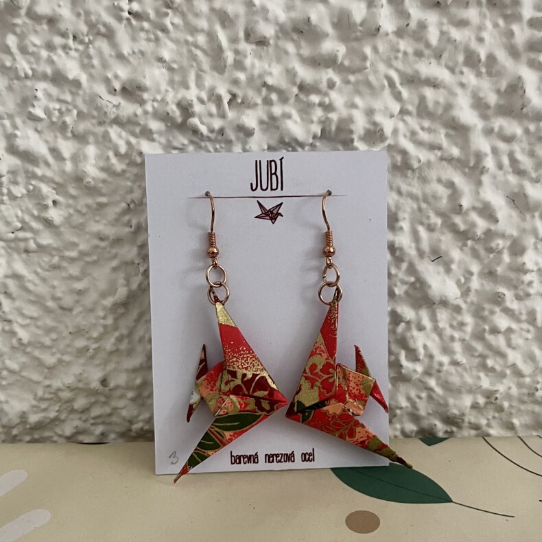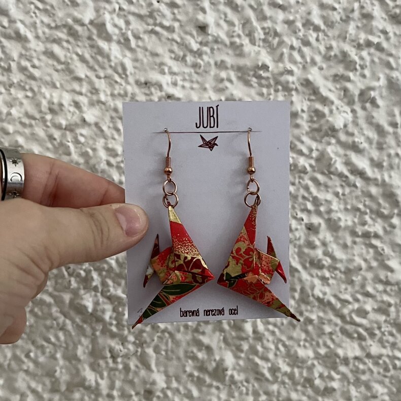 Náušnice jsou ručně složeny z kvalitního dovozového washi papíru, který byl vyroben v samotné kolébce origami v Japonsku.