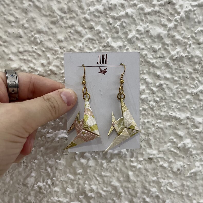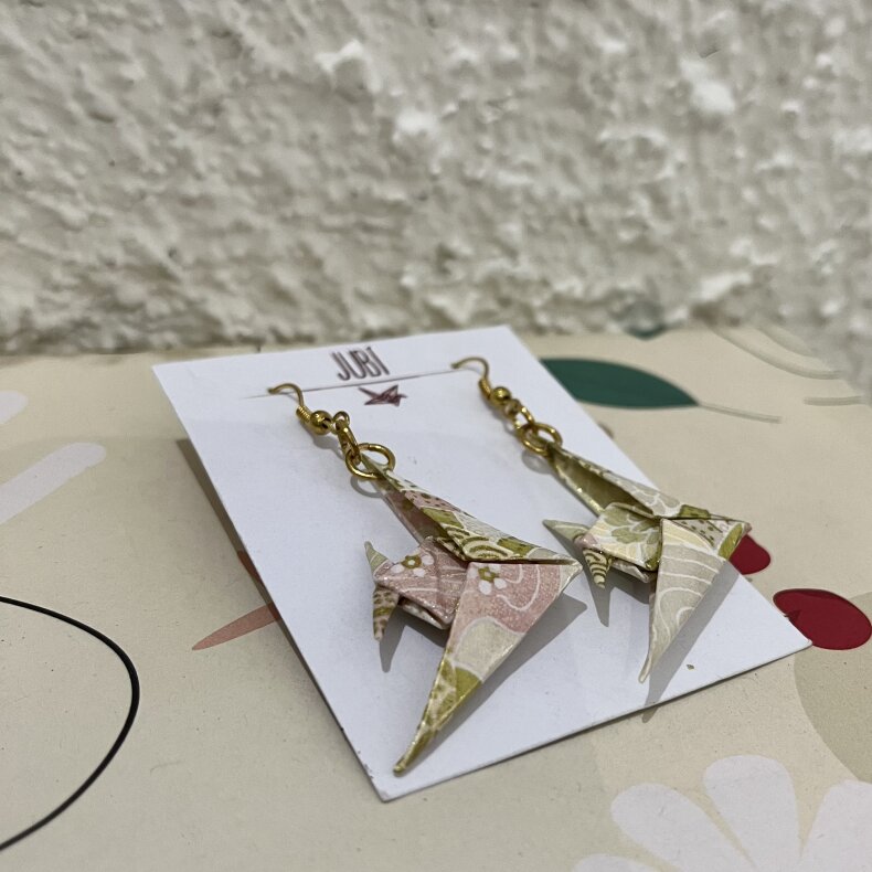 Náušnice jsou ručně složeny z kvalitního dovozového washi papíru, který byl vyroben v samotné kolébce origami v Japonsku.