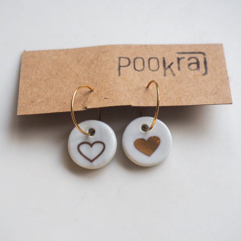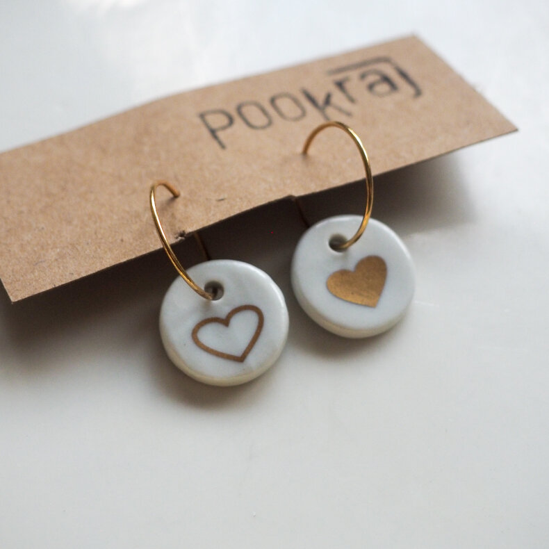 jemné porcelánové visací náušnice s originální zlatou kresbou