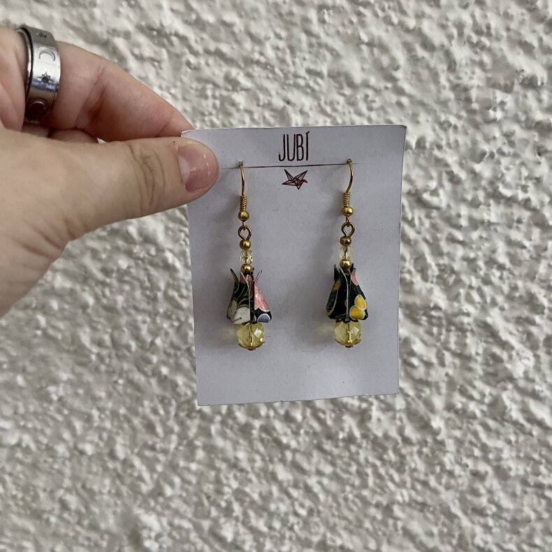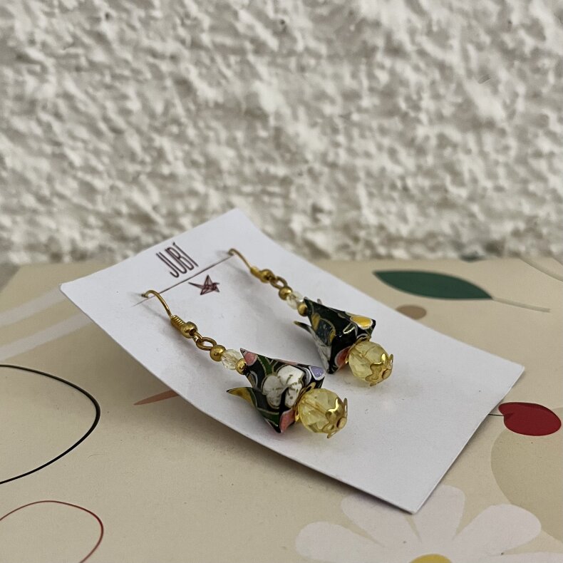 Náušnice jsou ručně složeny z kvalitního dovozového washi papíru, který byl vyroben v samotné kolébce origami v Japonsku.