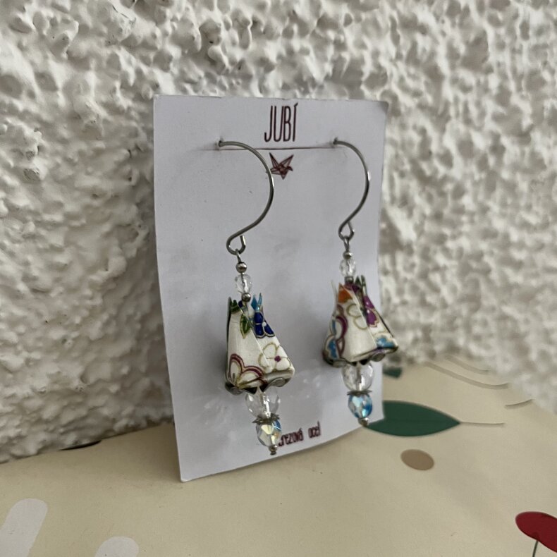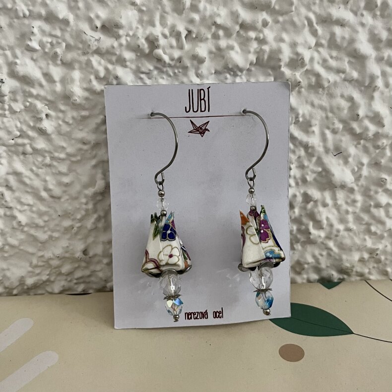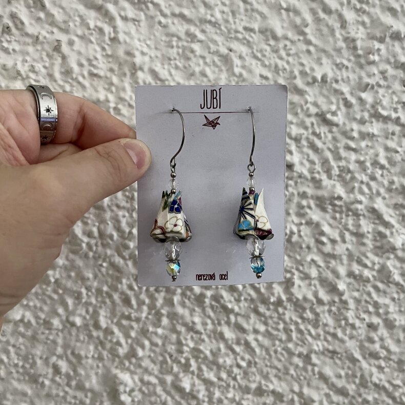Náušnice jsou ručně složeny z kvalitního dovozového washi papíru, který byl vyroben v samotné kolébce origami v Japonsku.