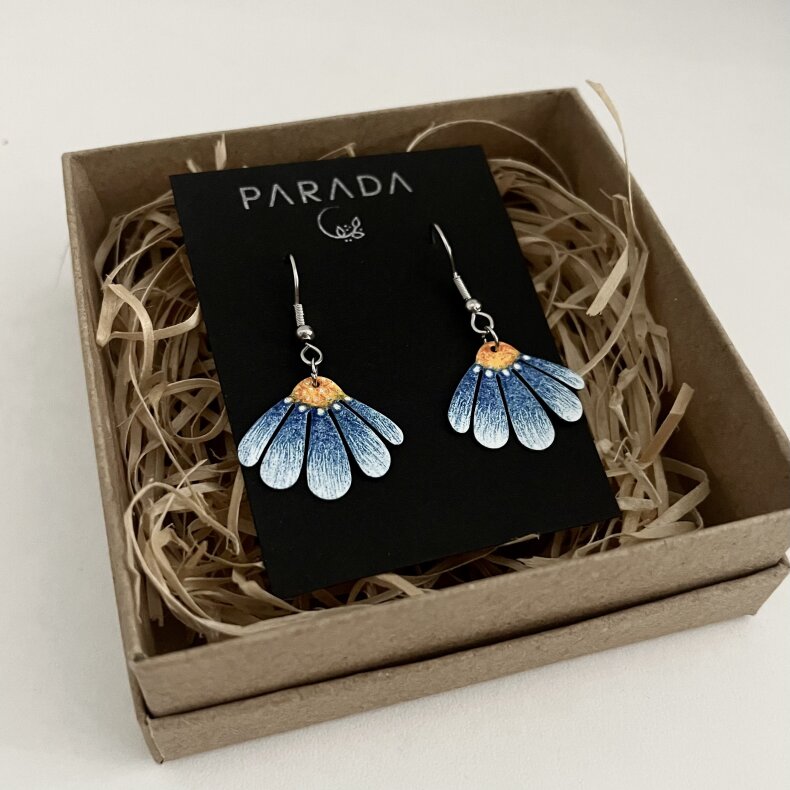 Náušnice jsou vyrobeny z nerezové oceli, smaltované a ručně malovány. Každý výrobek je tedy originálním uměleckým dílem a může se lehce lišit od toho zde na obrázku.