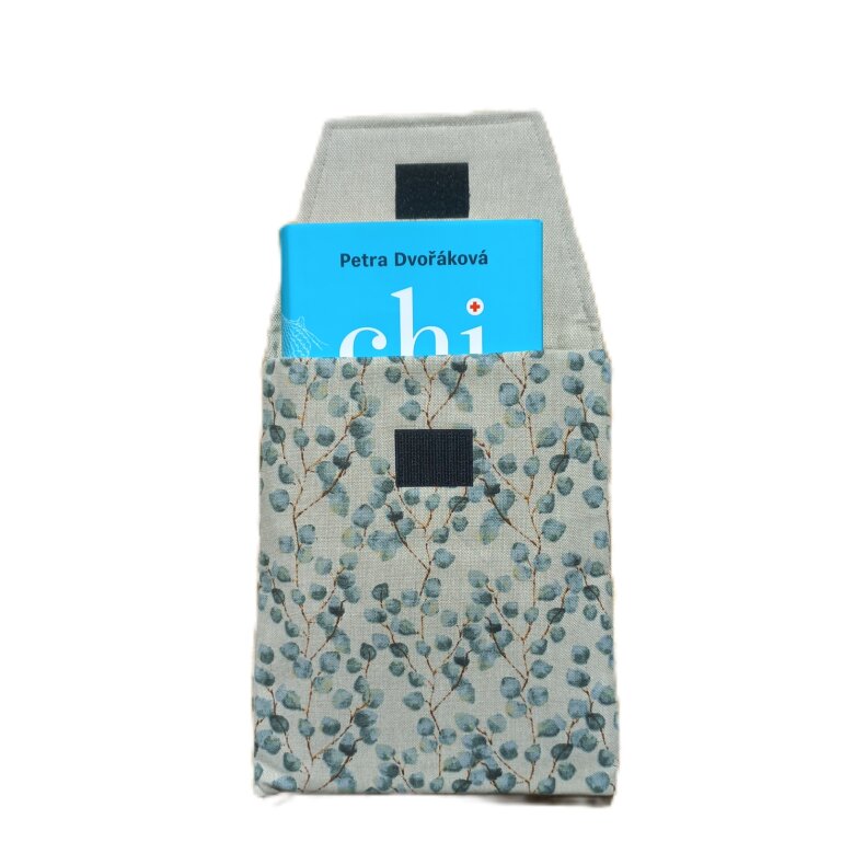 Ručně šitý obal na knížku ve tvaru kapsy. Vyroben z kvalitní dekorační bavlněné látky s vyšší gramáží.