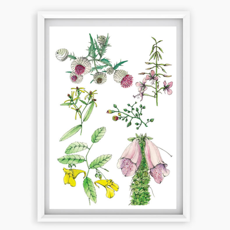 Krásná akvarelová reprodukce rostlin z Beskyd, která ozdobí každý pokoj.