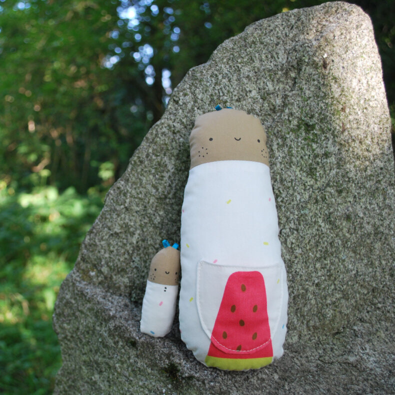 Figurky jsou ušity z bavlněného plátna a vyplněny polyesterovým vláknem. Detaily jsou malovány přírodními "mlékovkami". Fotografie je ilustrační brouček s miminkem se může lehce lišit.