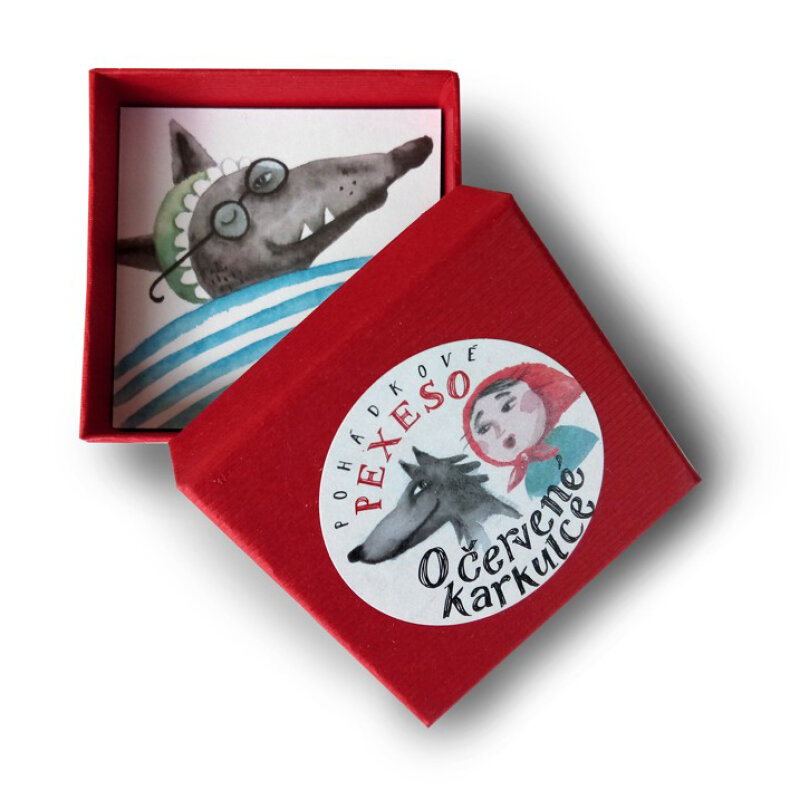 Akvarelové pexeso známé pohádky. V pexesu je 36 kartiček (18 párů). Velikost hracích kartiček 53 mm, krabička 60 mm. Vytištěno na kvalitním ofsetovém papíře.