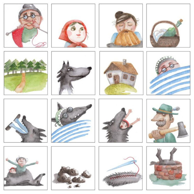 Pohádkové pexeso s příběhem. Zahrajte si pexeso nebo podle kartiček vyprávějte známý příběh.
