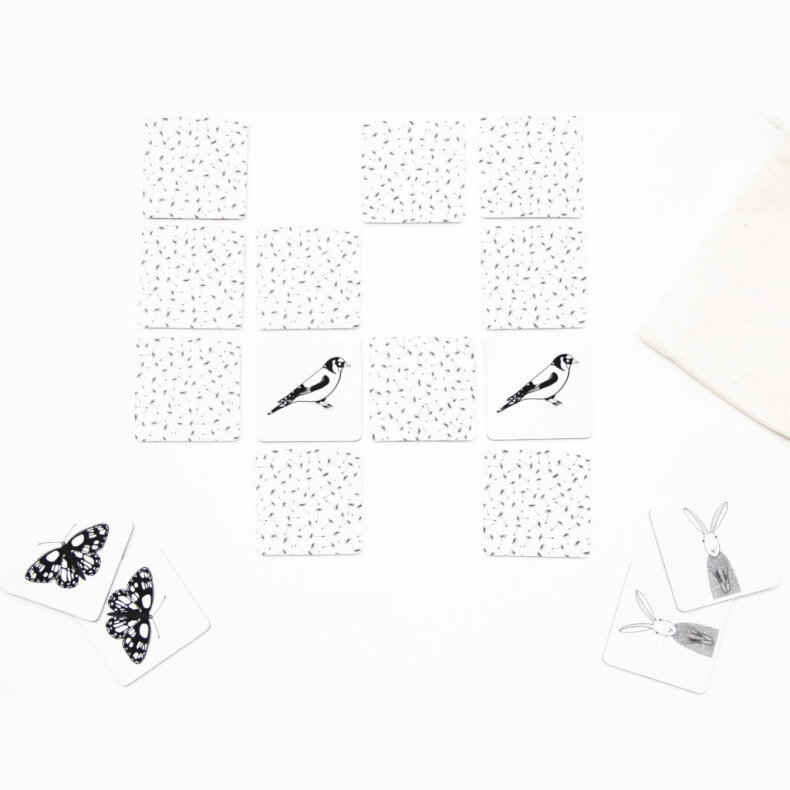 Balení obsahuje karty s motivem ještěrky, čmeláka, housenky, motýla, kobylky, šneka, stehlíka a zajíce. Karty jsou tištěny na kvalitním kartonovém papíru, velikost jedné karty je 4 cm x 4 cm x 1,7 mm. Pexeso je ideální na cesty, protože je zabaleno ve stahovacím lněném pytlíku.
