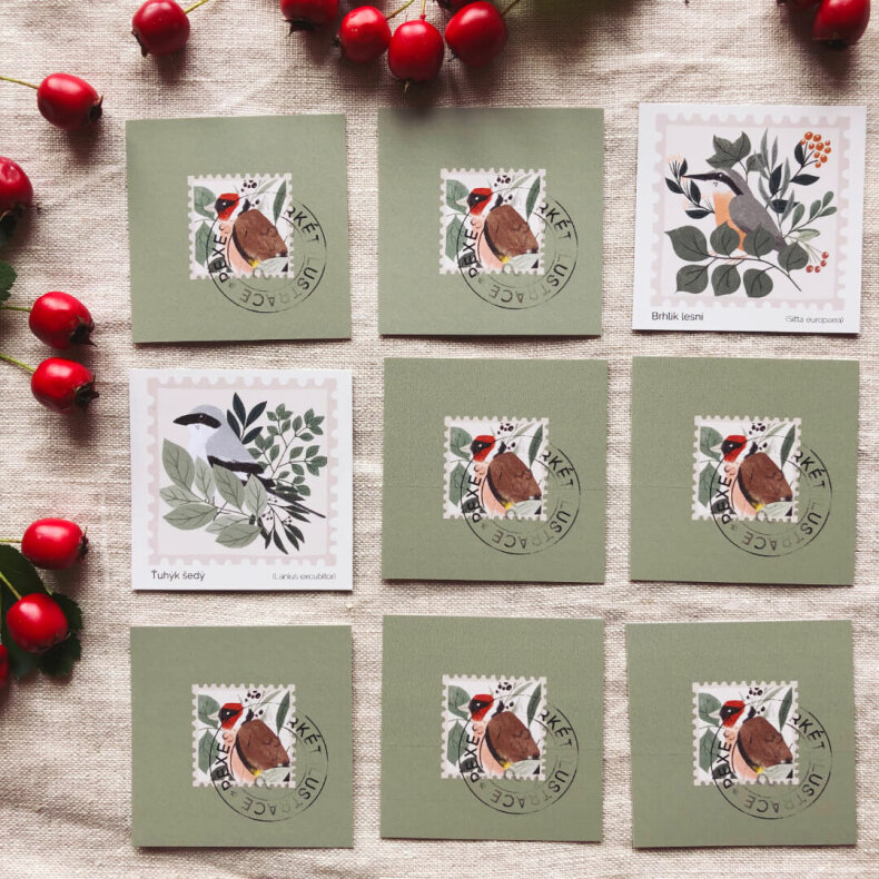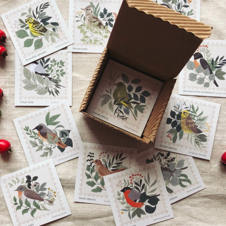 Pexeso je už nařezané a umístěné do kartonové krabičky. Ta obsahuje 32 + 32 kartiček s druhy ptáčků s českým a latinským názvem.
