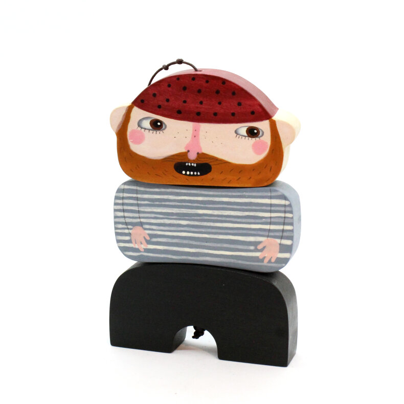 Figurka je zavěšená na provázku z přírodního vlákna, je vyřezávaná z lipového dřeva, ručně malovaná akrylovými barvami a voskem, zdravotně nezávadná. Pirát může stát i viset!