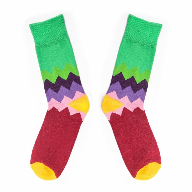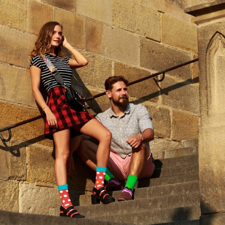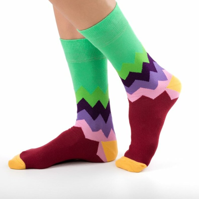 Barevné ponožky vyrobené z nejlepší česané bavlny. Přesto ponožky s chybou. Totiž, abyste rozuměli, stejně jako každá cesta za snem, má i tato ponožka vždy svou "chybu". Malou barevnou odchylku od vzoru. Všimli jste si? Protože chyby jsou tu od toho, aby nám pomohly jít lépe dál. S úsměvem, s barvami. A tomu my věříme! Poněvadž, kde jsou chyby, tam je ponaučení. A kde jsou barvy, tam jsou sny. A kde je sen, tam je i cesta. Cesta, jak začít nový příběh.