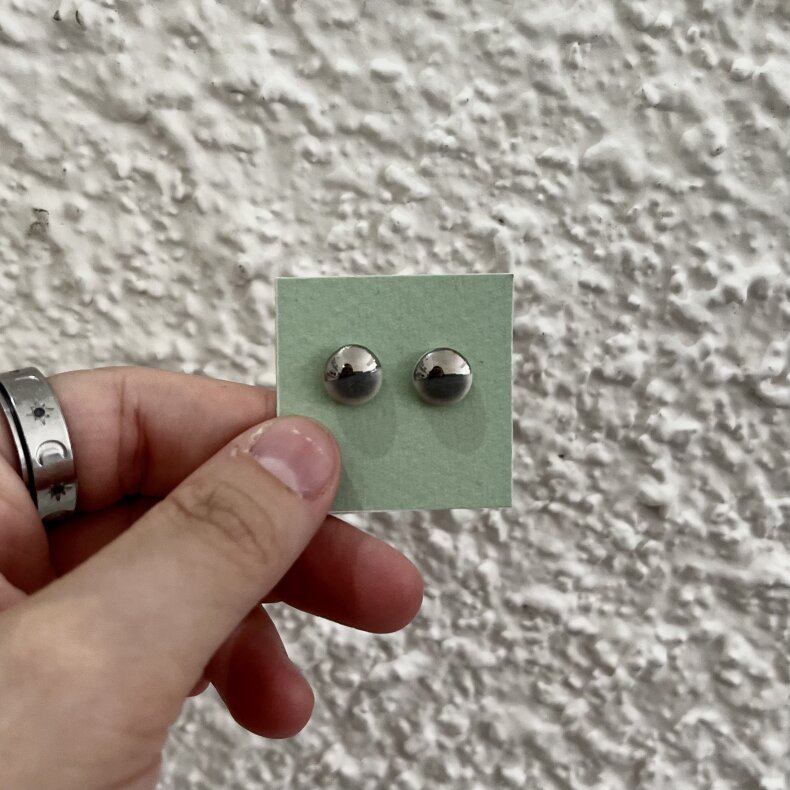 dekorované porcelánové mini náušnice v podobě elegantních šedých koleček