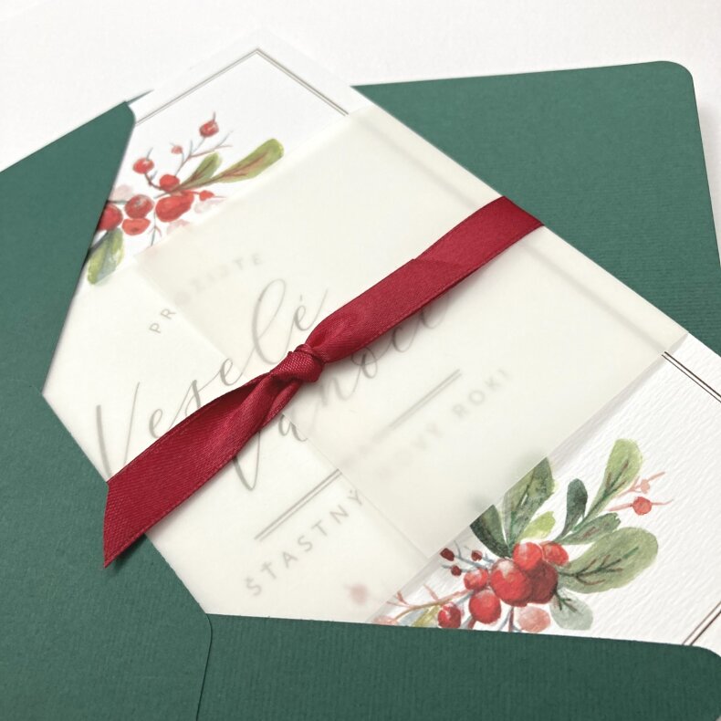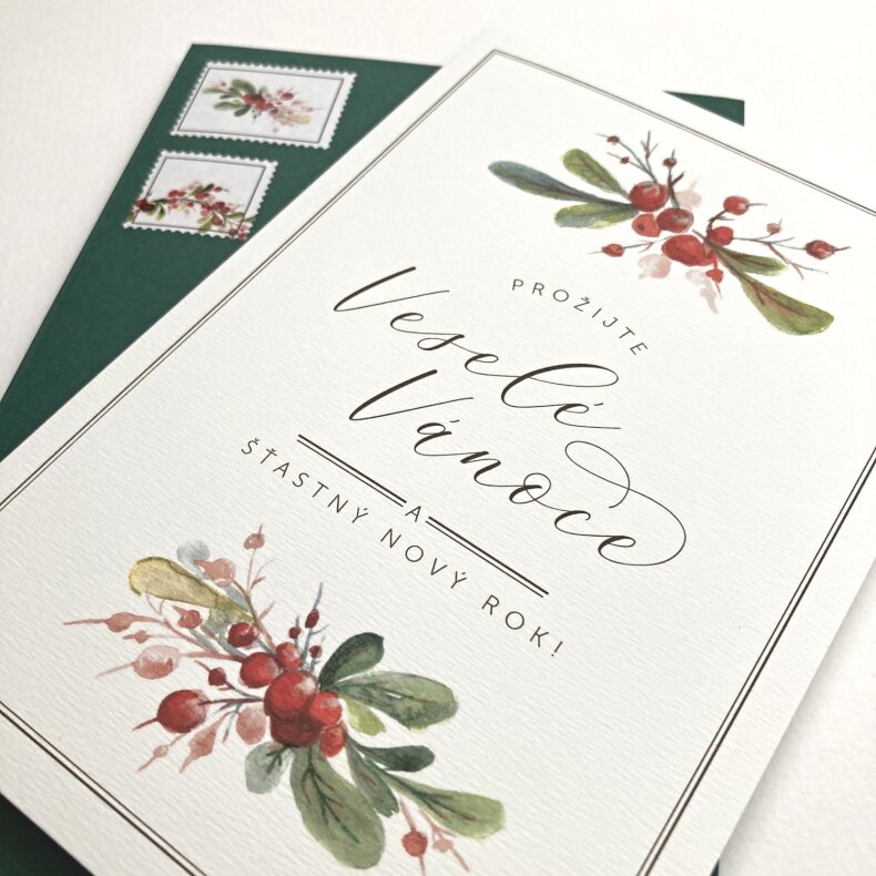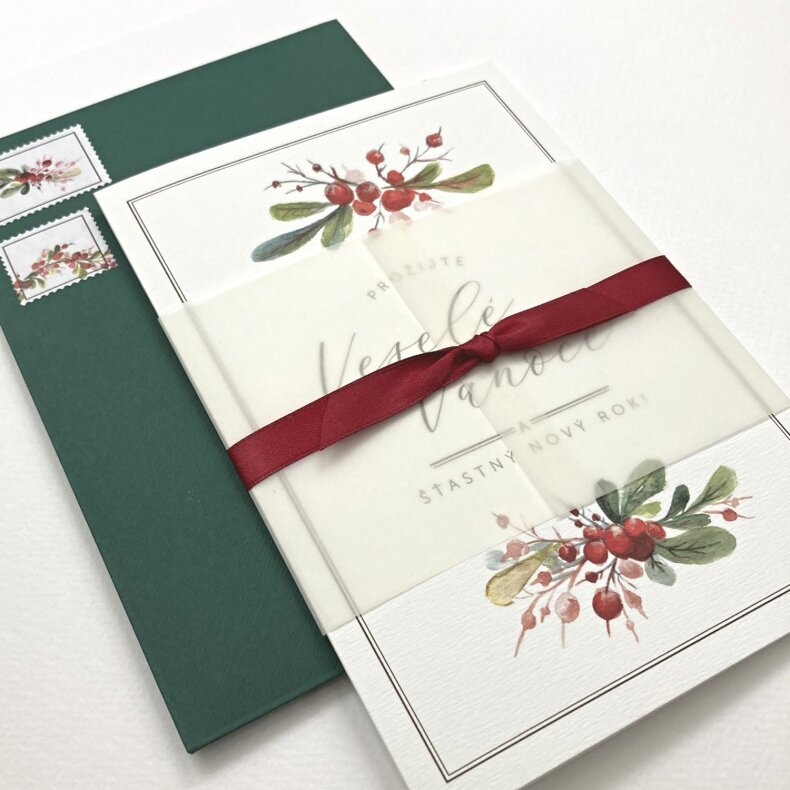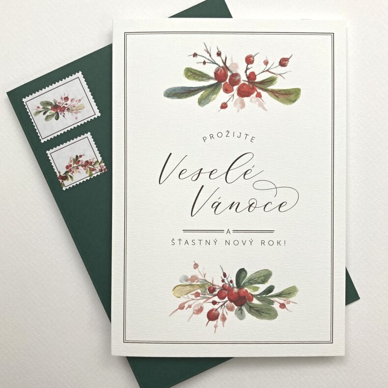 - Obálka z barevného papíru 240 g, doplněná o ozdobné známky