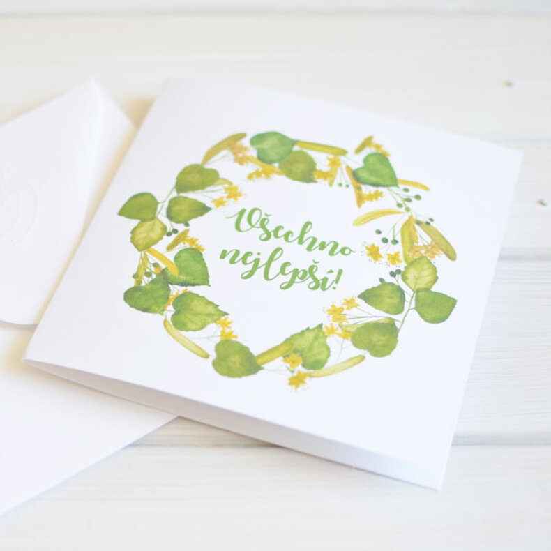 Čtvercové přání s akvarelovou ilustrací. Pošlete rovnou do schránky anebo přibalte k dárku.