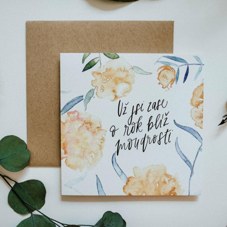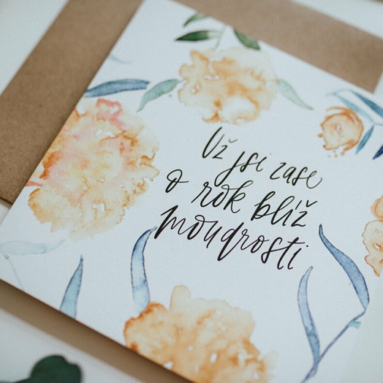 Zase o rok blíž moudrosti? Popřejte originálně a vtipně s přáním z kolekce Pivoňka, které je lemované touto krásnou květinou.
