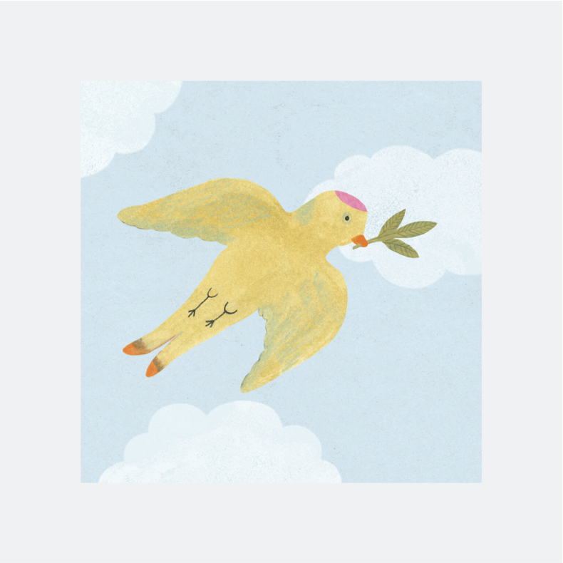 Ilustrovaný pohled "Ptáček s ratolestí" , kterým potěšíte nejen na Velikonoce.