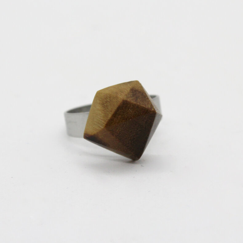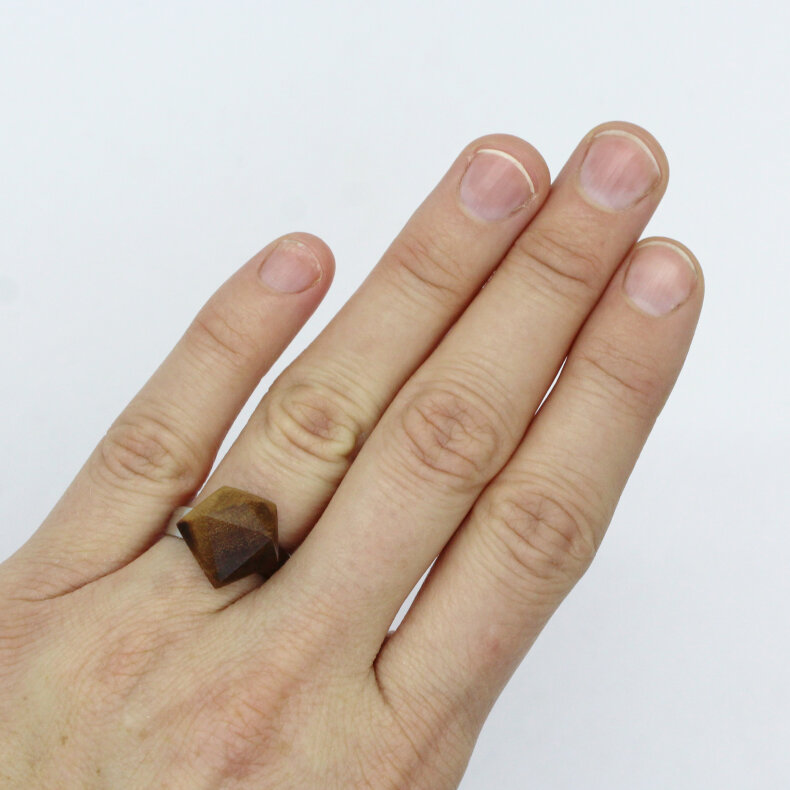 Zvětšovací prsten. Dřevěný krystal je nalepen na kovové zvětšovací objímce, kterou si upravíte dle vaší velikosti.