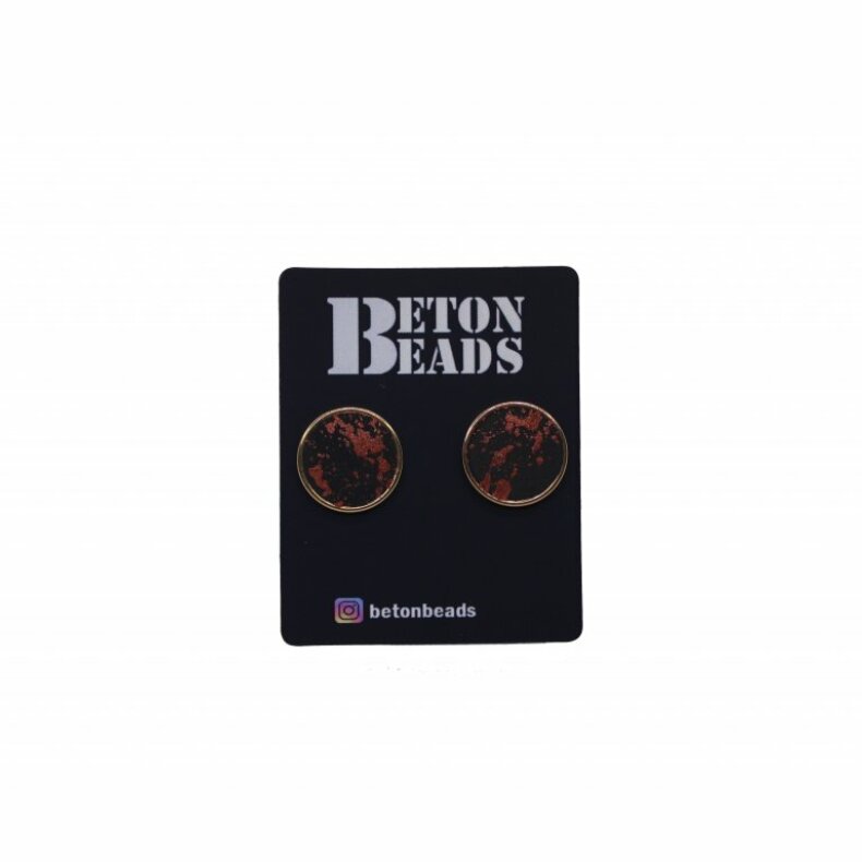 Náušnice s průměrem lůžka 12mm, v měděném designu, vyráběné ze speciálního šperkařského betonu a nerezového lůžka, jsou povrchově impregnované, a tudíž odolné proti vodě.