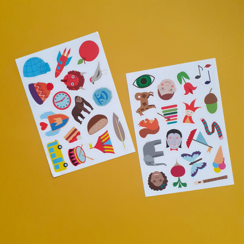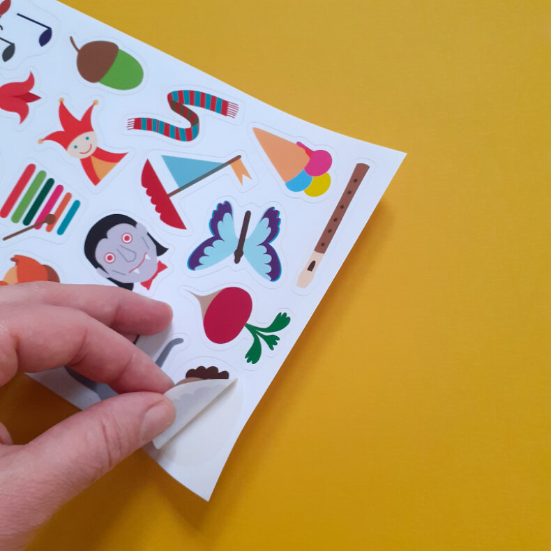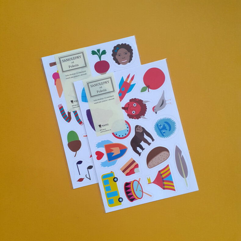 Jedno balení obsahuje 2 archy o velikosti A5 se 34 samolepkami.