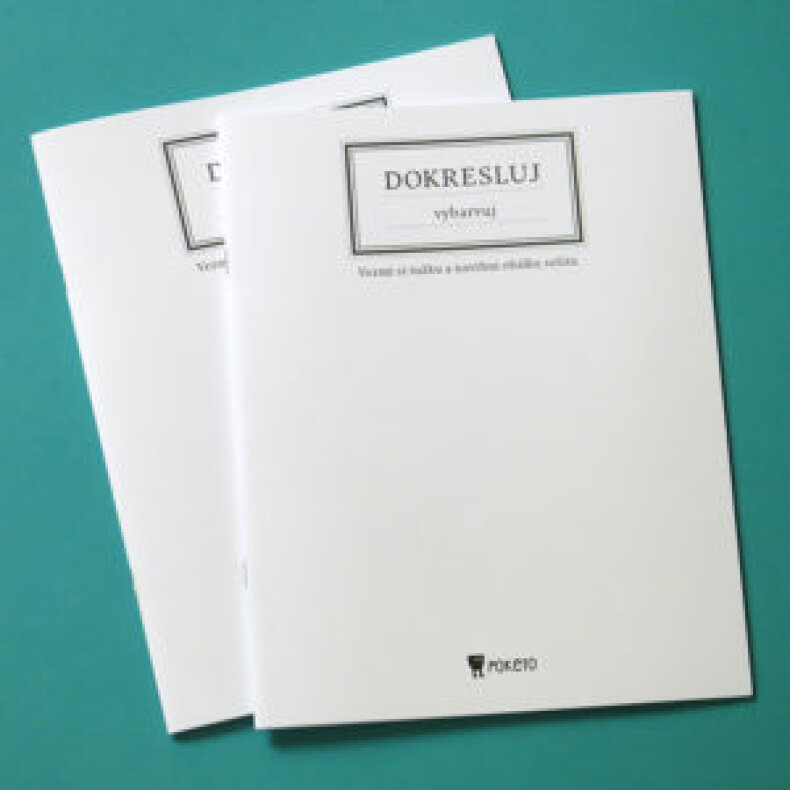 Prázný sešit k dotvoření. Co stránka, to písmeno české abecedy a s ním spojený úkol.