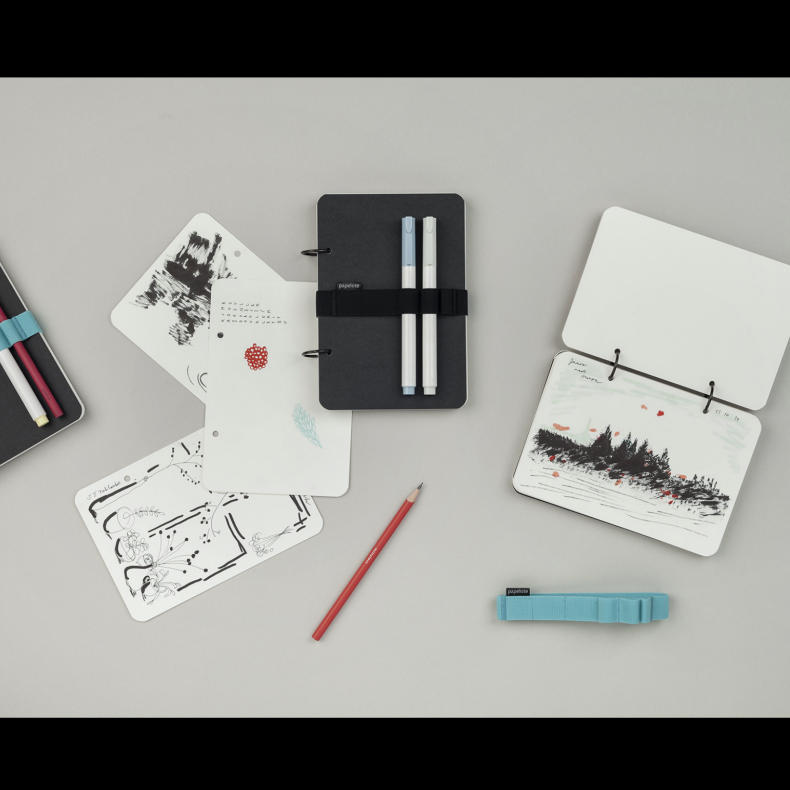 Obálka bloku je vyrobena ze 100% recyklovaných papírových vláken, stránky jsou z papíru, který splňuje nejvyšší ekologické standardy. Skicák byl vyroben v Česku.
