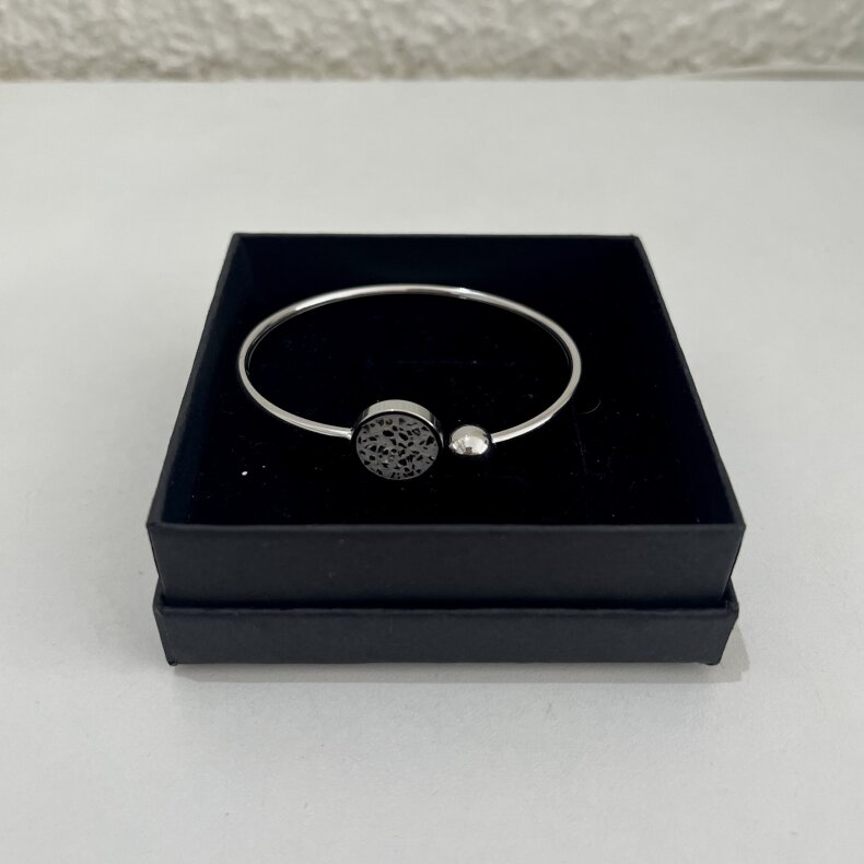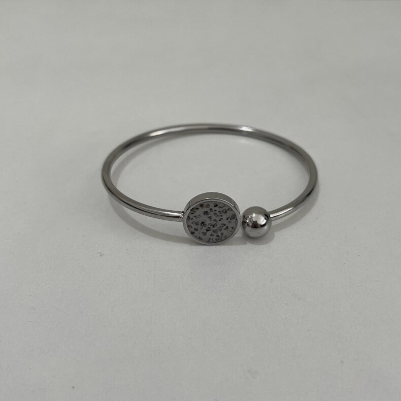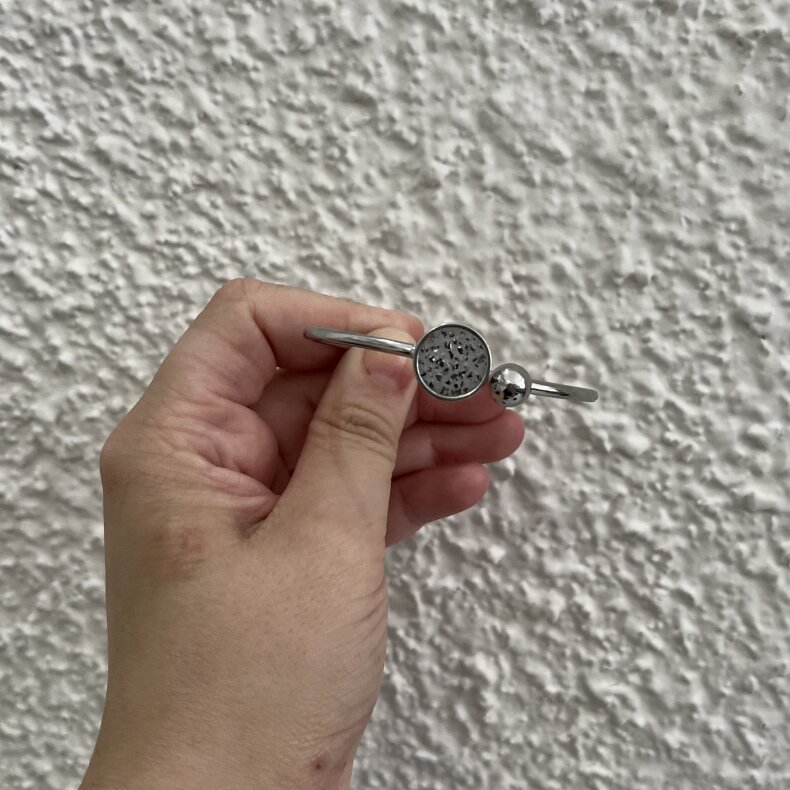 Náramek je kombinací šperkařského betonu zasazeného v základu z oceli 304, stříbrné provedení.