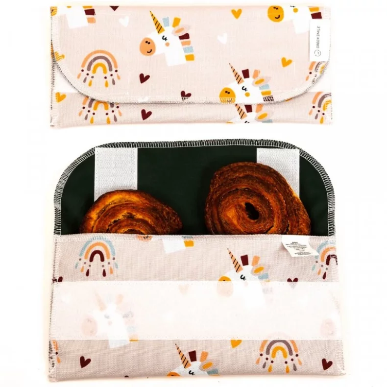 Svačinová kapsa je skvělou náhradou za plastové sáčky a jednorázové ubrousky. Tato ekologická varianta poslouží na zabalení svačiny do školy, přírody nebo do práce. Do kapsy se vejdou dva rohlíky nebo housky. Vnitřní i vnější materiál je navíc nepromokavý.