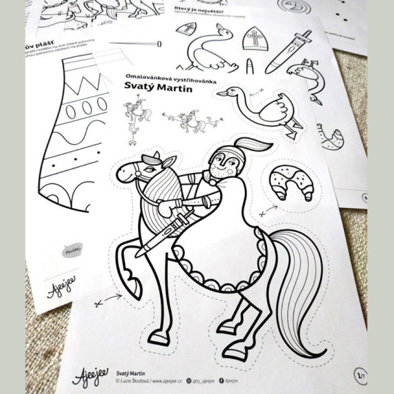 Obrázky jsou černobílé, vytištěny na silnější papír, takže se příjemně vybarvují a vystřihnuté mohou posloužit třeba jako dekorace v podobě girlandy nebo jako papírová loutka na špejli.