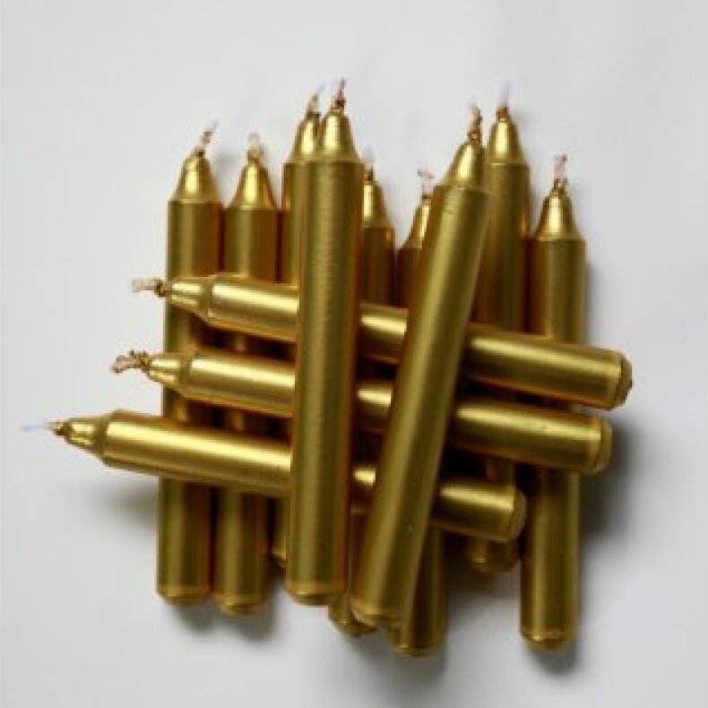 zlaté vánoční svíčky bez okapu vhodné do Zvonícího stromku či na vánoční stromeček