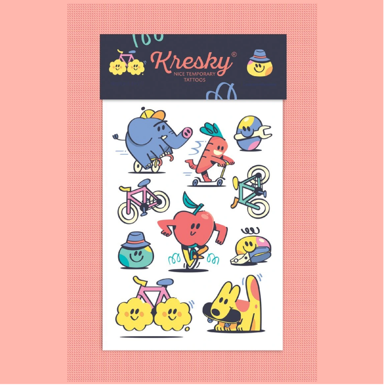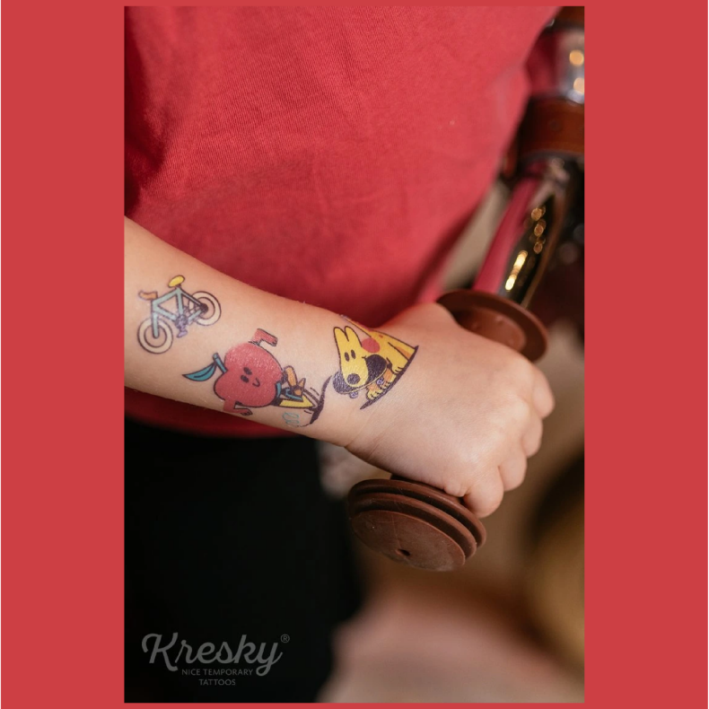 Co vám chybí k veselé jízdě na kole? Veselé tetovačky na kolečkách vám zpříjemní každou chvíli s větrem ve vlasech nebo při opravě kola. A můžete vyrazit na výlet!