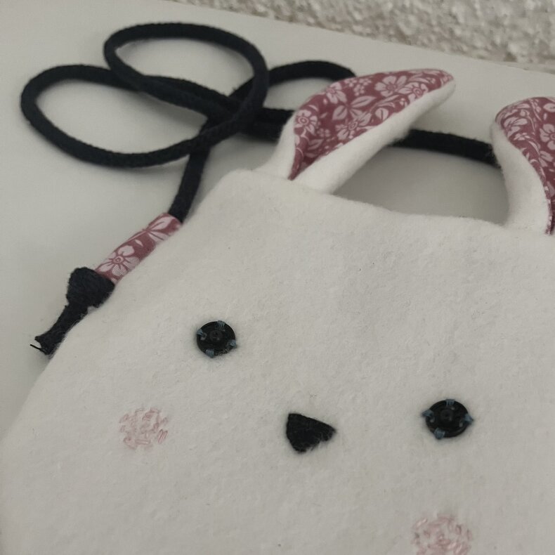 Kabelka je z vnější strany z hebkého bavlněného fleecu. Uvnitř má květinkové růžové plátýnko. Pro větší pevnost podžehlené vlizelínem.