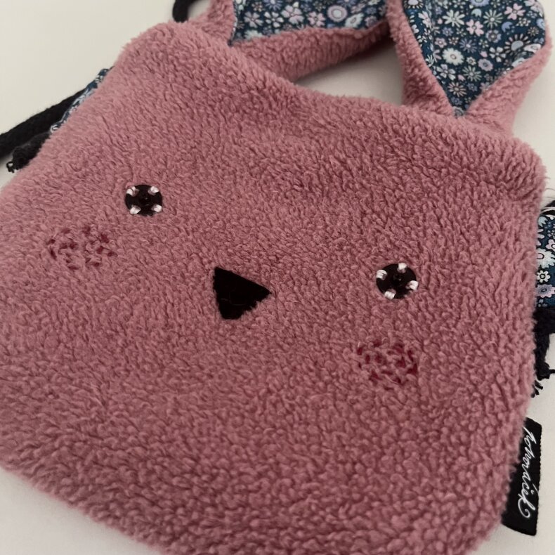 Kabelka je z vnější strany z hebkého bavlněného fleecu. Uvnitř má květinkové plátýnko. Pro větší pevnost podžehlené vlizelínem.