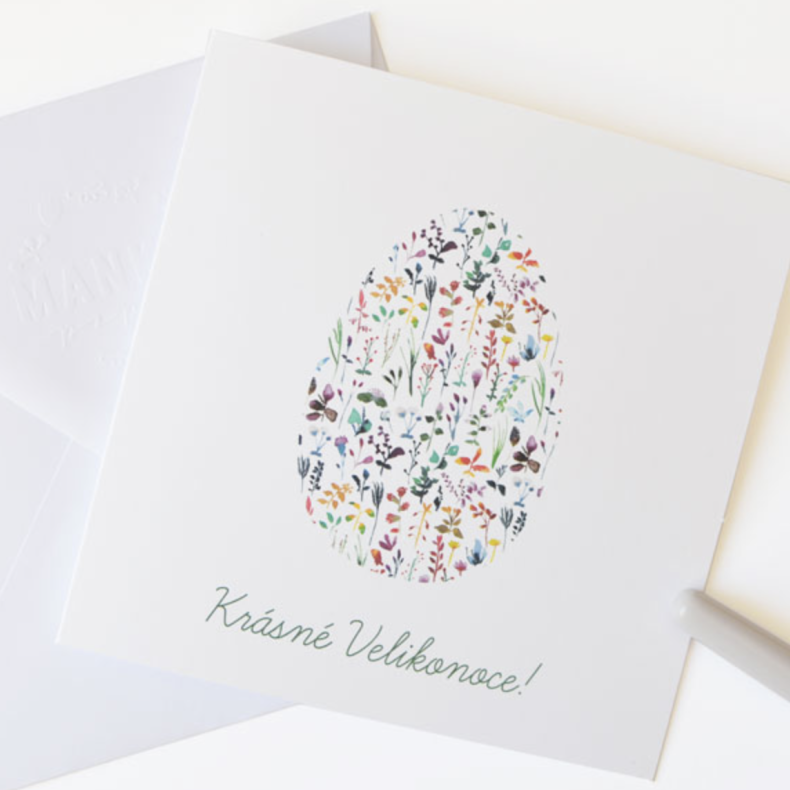 Čtvercové velikonoční přání s akvarelovou ilustrací vajíčka. Popřejte krásné Velikonoce nejen třeba svým blízkým :).