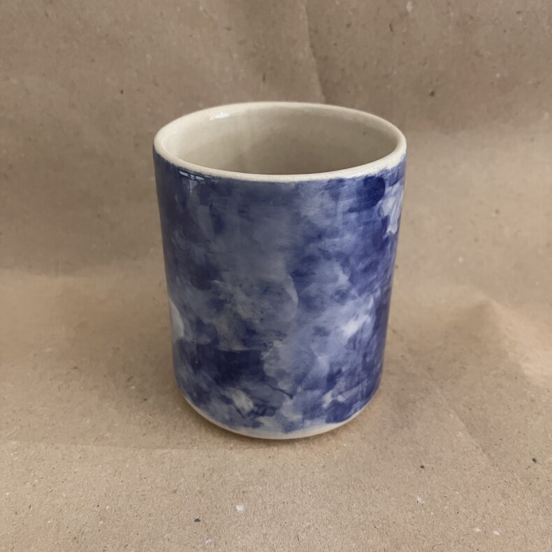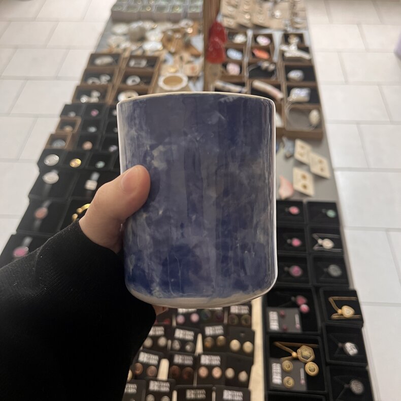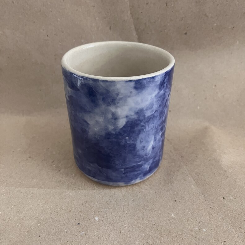 Větší kalíšek tmavě modré barvy tak akorát na pořádné kafe.
