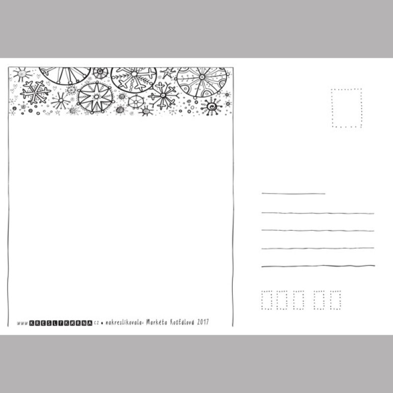 Velikost pohledu je 148 x210 mm (A5). Materiál: tvrdý karton, na který se dá dobře malovat i psát. Kvalitní laserový tisk, více řádků pro napsání adresy.