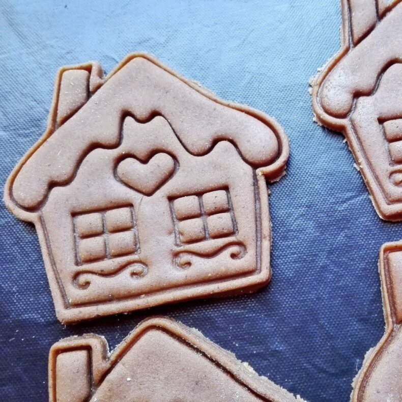 - Na začátku Vám bude chvilinku trvat, než přijde, jak moc máte na emboser tlačit, abyste měli hezký reliéf a aby těsto nezůstávalo v emboseru. Doporučujeme tlačit nejprve zlehka a postupně přitlačovat, dokud nedosáhnete požadovaného výsledku. Věřte mi, po vykrojení nezdařeného reliéfu je mnohem jednodušší udělat sušenku znovu, než lovit těsto s emboseru :)