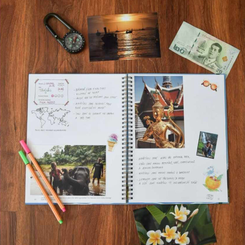 V kronice naleznete místo pro pohodlné zaznamenání 25 až 50 dovolených po Evropě. A další prostor pro uchování vzpomínek z 10 až 20 dovolených po celém světě. Můžete si vybrat, jestli potřebujete celou dvojstránku nebo vám stačí jedna strana, díky flexibilnímu designu knihy je to na vás. Místo na cestování po světě můžete samozřejmě využít i na Evropu, fantazii se meze nekladou.
