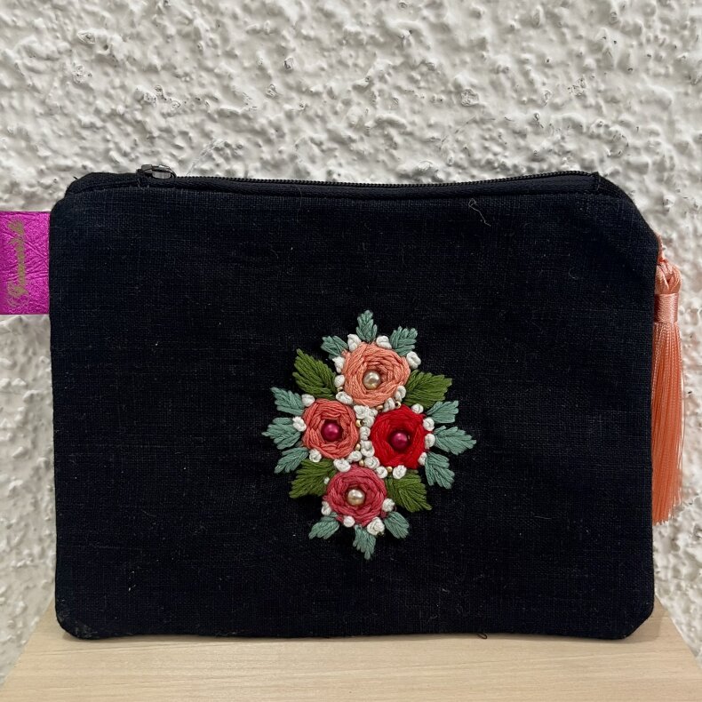 Vyšívaná taštička, kterou můžete využít na drobnosti, nebo jako psaníčko.