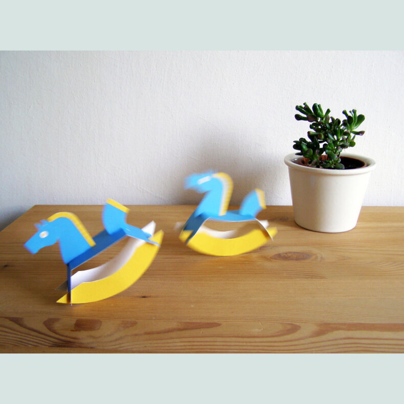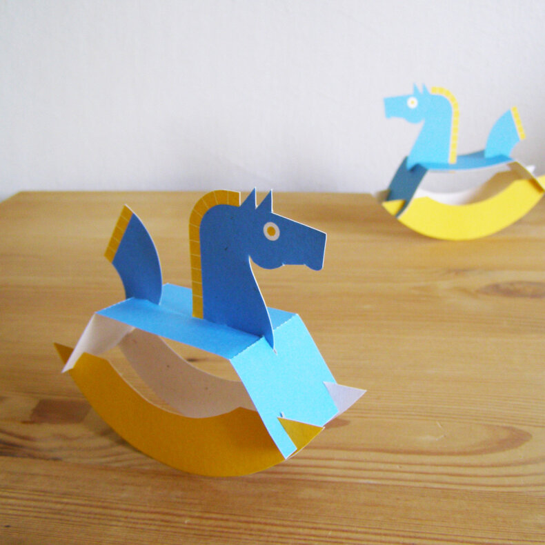 jednoduchá vystřihovánka a skládanka houpacího koníka