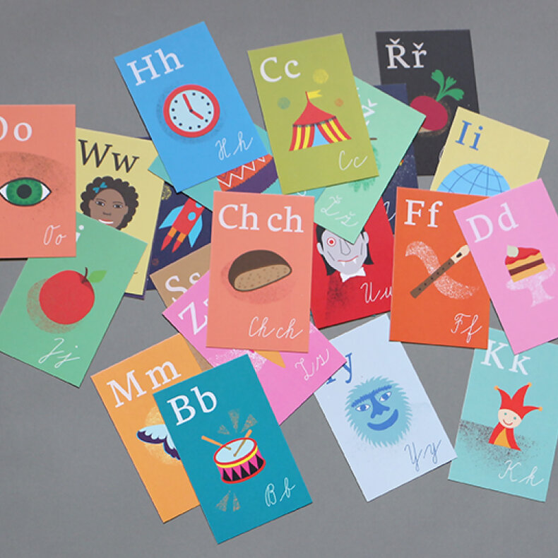 Sada obsahuje 35 kartiček s kompletní českou abecedou a pevnou krabičku.