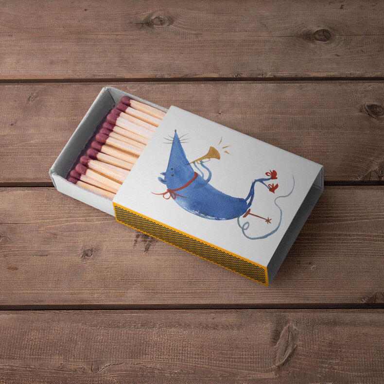 neotřelá krabička zápalek s ilustrací Olgy Yakubovské