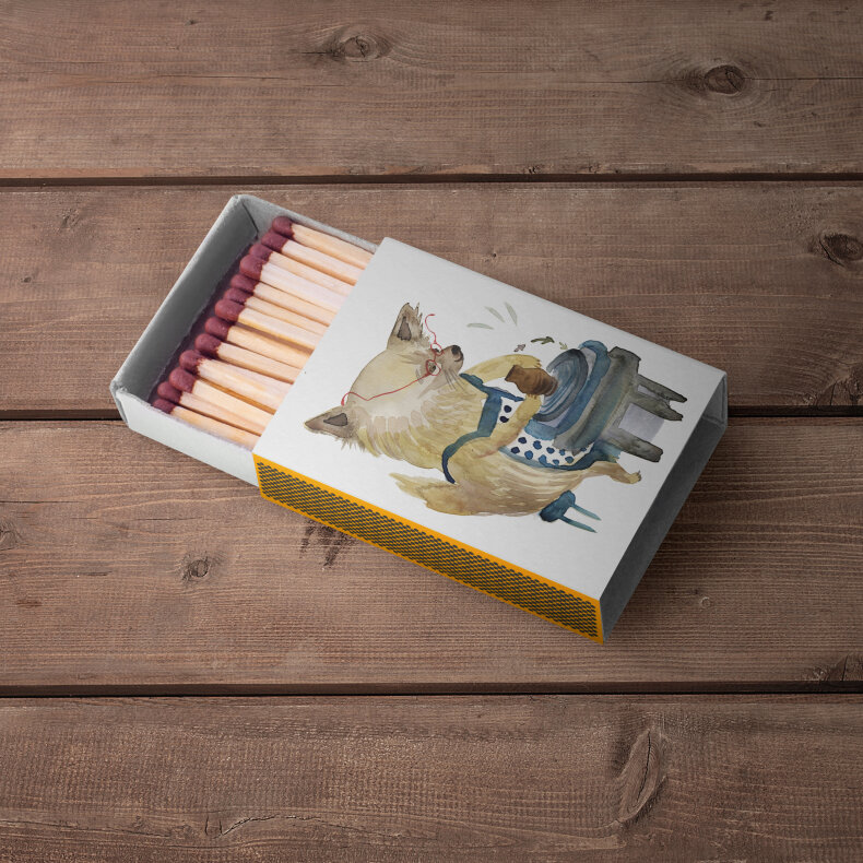 neotřelá krabička zápalek s ilustrací Olgy Yakubovské