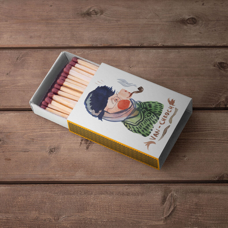 neotřelá krabička zápalek s ilustrací Olgy Yakubovské