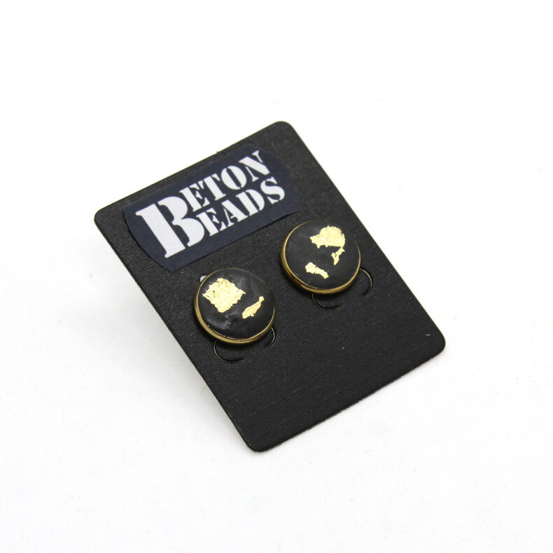 Náušnice jsou kombinací barevného betonu zasazeného v základu z oceli 304 s kvalitní zlatou povrchovou úpravou.