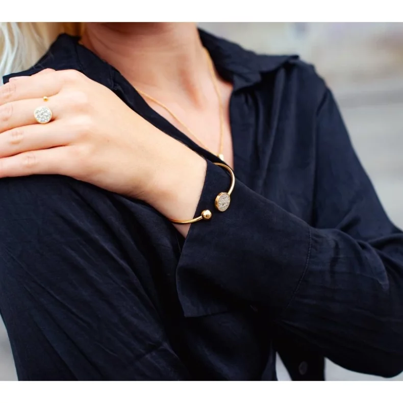 Náramek je kombinací šperkařského betonu zasazeného v základu z oceli 304, zlaté provedení.